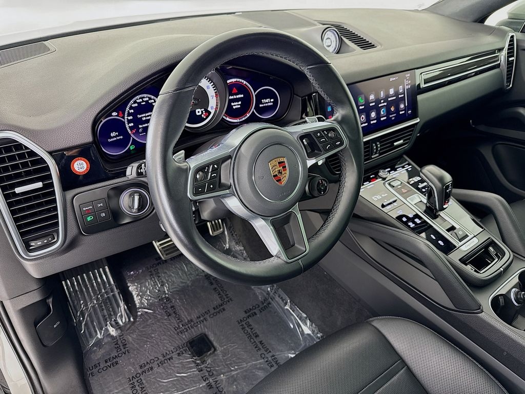 2022 Porsche Cayenne Coupe S in Chalk with Interior in Black. Under Porsche Approved Certified Pre-Owned Warranty for 2 Years and Unlimited Miles from Expiration of Porsche New Vehicle Warranty. New Vehicle Warranty Start Date is 6/30/2022. Premium Package Plus: Power Seats (14-way) with Comfort Memory, Heated Seats (front and rear), Ventilated Seats (front), 4-Zone Climate Control, LED-Matrix Design Headlights incl PDLS+, and Lane Change Assist. Also with: Under Door Puddle Light Projectors, ''Porsche'' Logo in Satin Black and Model Designation on Rear in High Gloss Black, Sport Chrono Package, Sport Exhaust System incl Tailpipes in Black, 21'' Cayenne Exclusive Design Wheels in Satin Platinum, Rear Comfort Seats (2+1), Heated Steering Wheel, Smoking Package, Sport Chrono Stopwatch in White, Central Tachometer in White, Center Console Armrest with Porsche Crest, Interior Trim in Carbon Fiber, Clear LED Taillights, Surround View, Adaptive Cruise Control, and Soft Close Doors. Available at Porsche Crest on Headrests. Available at Porsche Grapevine 1280 Texan Trail Grapevine TX 76051.