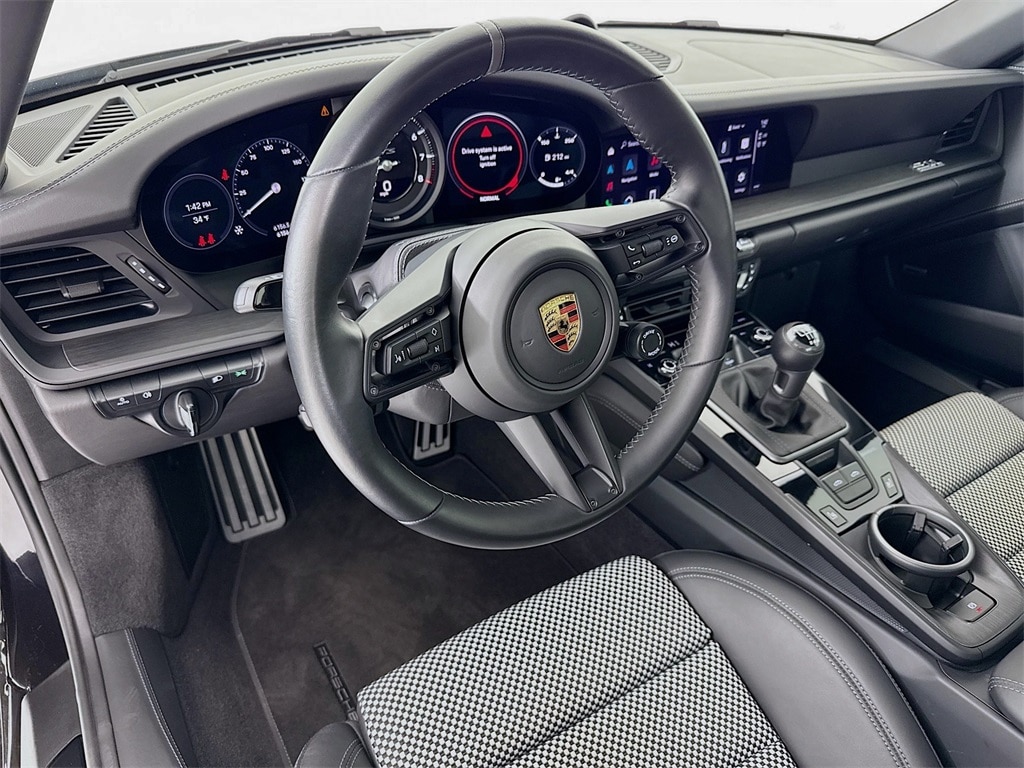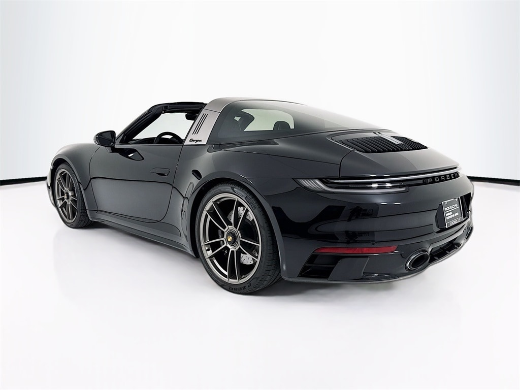2023 Porsche 911 Edition 50 Years Porsche Design Targa in Jet Black Metallic with Leather Interior in Black with Slate Grey Stitching Checkered Sport-Tex Seat Centers in Black/Cool Grey. Under Porsche Approved Certified Pre-Owned Warranty for 2 Years and Unlimited Miles from Expiration of Porsche New Vehicle Warranty. New Vehicle Warranty Start Date is 6/23/2023. Features Paint Protection Film AND Porsche Design Watch and Case. Options Featured: Power Folding Exterior Mirrors, Exterior Mirrors Base in Exterior Color, Under Door Puddle Light Projectors, Deletion of "Porsche Design" Decal on Side, Deletion of "911" Logo on Rear, 7-Speed Transmission, PDCC, Front Axle Lift System, Exclusive Design Tailpipes in Silver, Power Steering Plus, Rear Axle Steering, Heated GT Sport Steering Wheel in Leather, Storage Package, Extended Leather Package - Slate Grey, Pedals and Footrest in Aluminum, Bespoke Door-SIll Guards in Black Brushed Aluminum - Illuminated, BOSE Surround Sound, LED-Matrix Design Headlights in Black incl PDLS+, Illuminated Lateral Gills on Taillights, Night Vision Assist, Lane Change Assist, and Preparation for Porsche Dashcam. Available at Porsche Grapevine 1280 Texan Trail Grapevine 1280 Texan Trail Grapevine TX 76051.