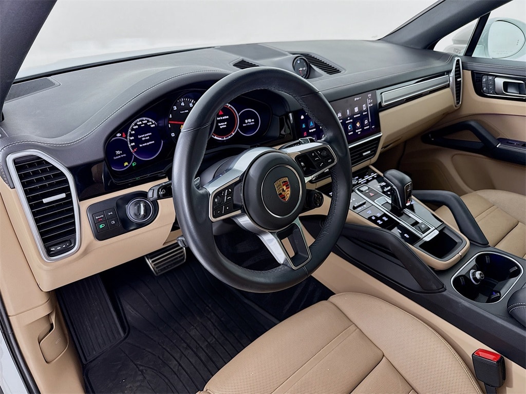2023 Porsche Cayenne Coupe S Platinum in White with Leather Interior in Black/Mojave Beige. Under Porsche Approved Certified Pre-Owned Warranty for 2 Years and Unlimited Miles from Expiration of Porsche New Vehicle Warranty. New Vehicle Warranty Start Date is 2/23/2023. Premium Package Plus: Power Seats (14-way) with Comfort Memory, Heated Seats (front and rear), Ventilated Seats (front), 4-Zone Climate Control, LED-Matrix Design Headlights incl PDLS+, and Lane Change Assist. Also with: Exterior Mirror Lower Trim and Base in Exterior Color, Trailer Hitch, Adaptive Air Suspension incl PASM, Rear Comfort Seats (2+1), Heated Steering Wheel, Clear LED Taillights, Surround View, Adaptive Cruise Control, and Soft Close Doors. Available at Porsche Grapevine 1280 Texan Trail Grapevine TX 76051.