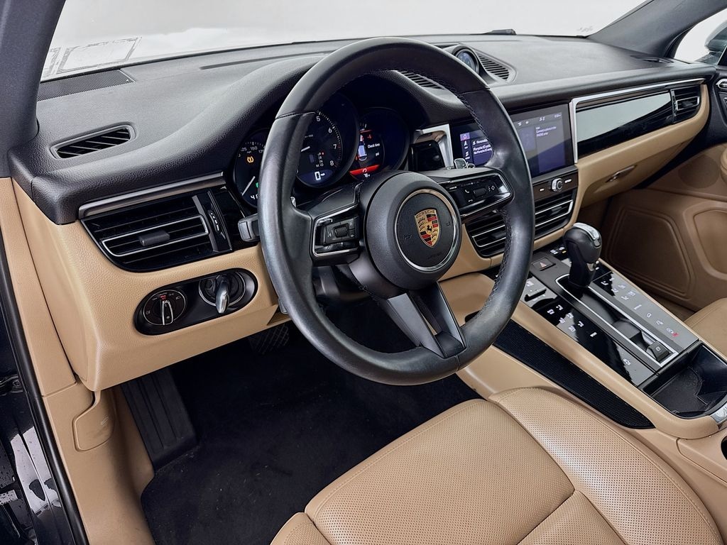 2023 Porsche Macan in Volcano Grey Metallic with Interior in Black/Mojave Beige. Under Porsche Approved Certified Pre-Owned Warranty for 2 Years and Unlimited Miles from Expiration of Porsche New Vehicle Warranty. New Vehicle Warranty Start Date is 2/27/2023. Premium Package Plus: Panoramic Roof, Power Seats (14-way) with Memory Package Heated Seats (rear), Ventilated Seats (front), LED Headlights incl PDLS+, and Lane Change Assist. Also with: 20" Macan Sport Wheels in Satin Platinum, Wheel Center Caps with Colored Porsche Crest, and Heated Steering Wheel. Available at Porsche Grapevine 1280 Texan Trail Grapevine TX 76051.