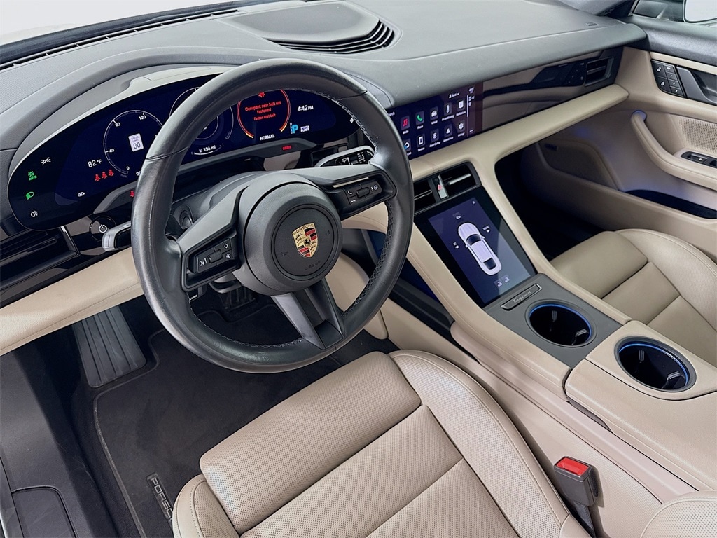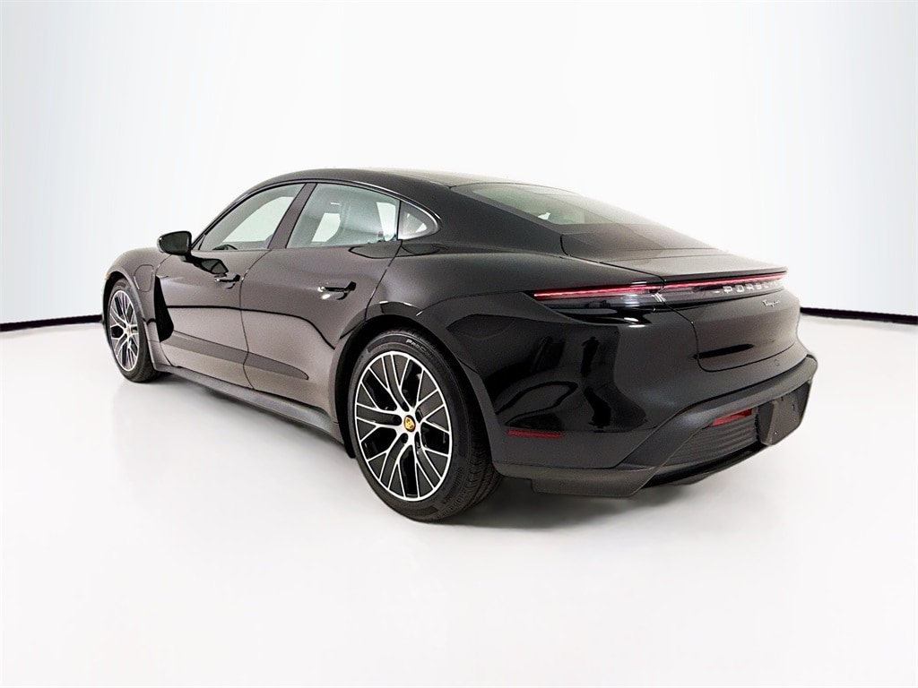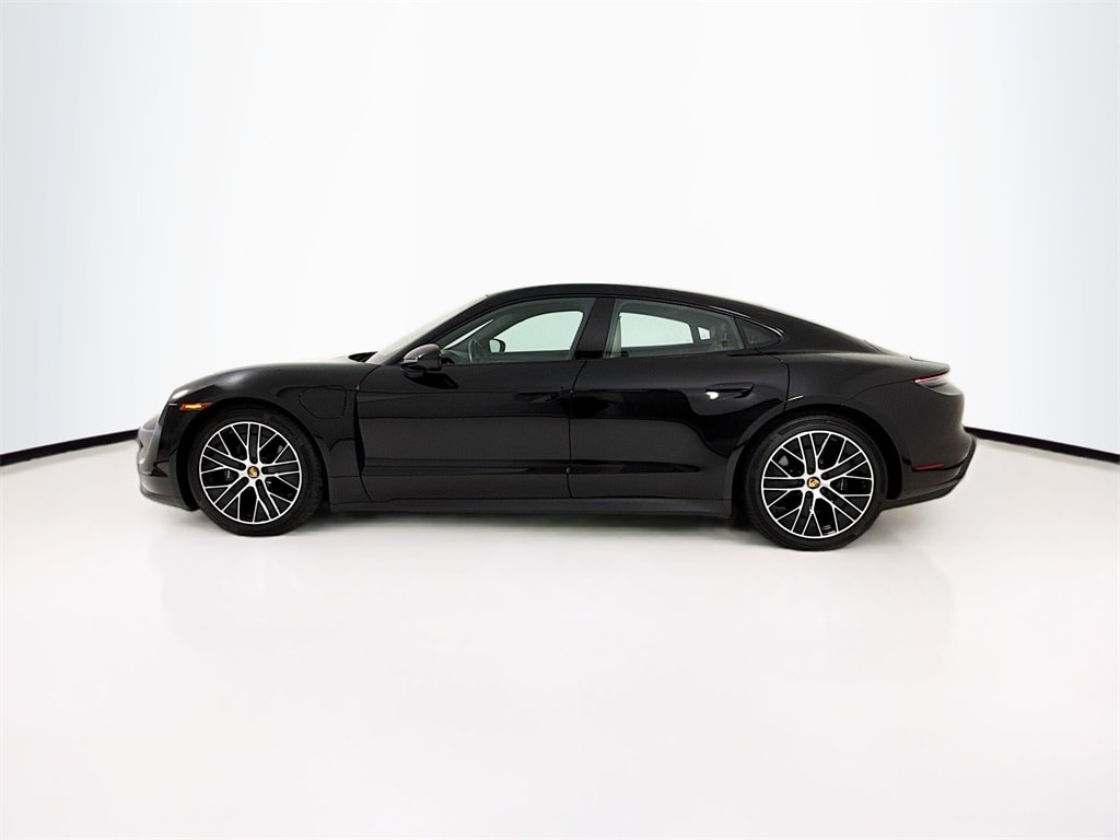 2023 Porsche Taycan in Black with Interior in Black/Limestone. Under Porsche Approved Certified Pre-Owned Warranty for up to 3 Years and Unlimited Miles from Expiration of Porsche New Vehicle Warranty. New Vehicle Warranty Start Date is 8/31/2023. Premium Package: Power Folding Exterior Mirrors, Ionizer, Power Seats (14-way) with Comfort Memory, Ambient Lighting, Ventilated Seats (front), Storage Package, BOSE Surround Sound, PDLS+, Fixed Panoramic Roof in Glass, Surround View, and Lance Change Assist. Also with: Wheel Center Caps with Colored Porsche Crest, 20" Taycan Turbo Aero Wheels, Heated Steering Wheel, Porsche Crest on Headrests (front), Porsche Electric Sport Sound, and On-Board 150 kW/400V DC Charger. Available at Porsche Grapevine 1280 Texan Trail Grapevine TX 76051.