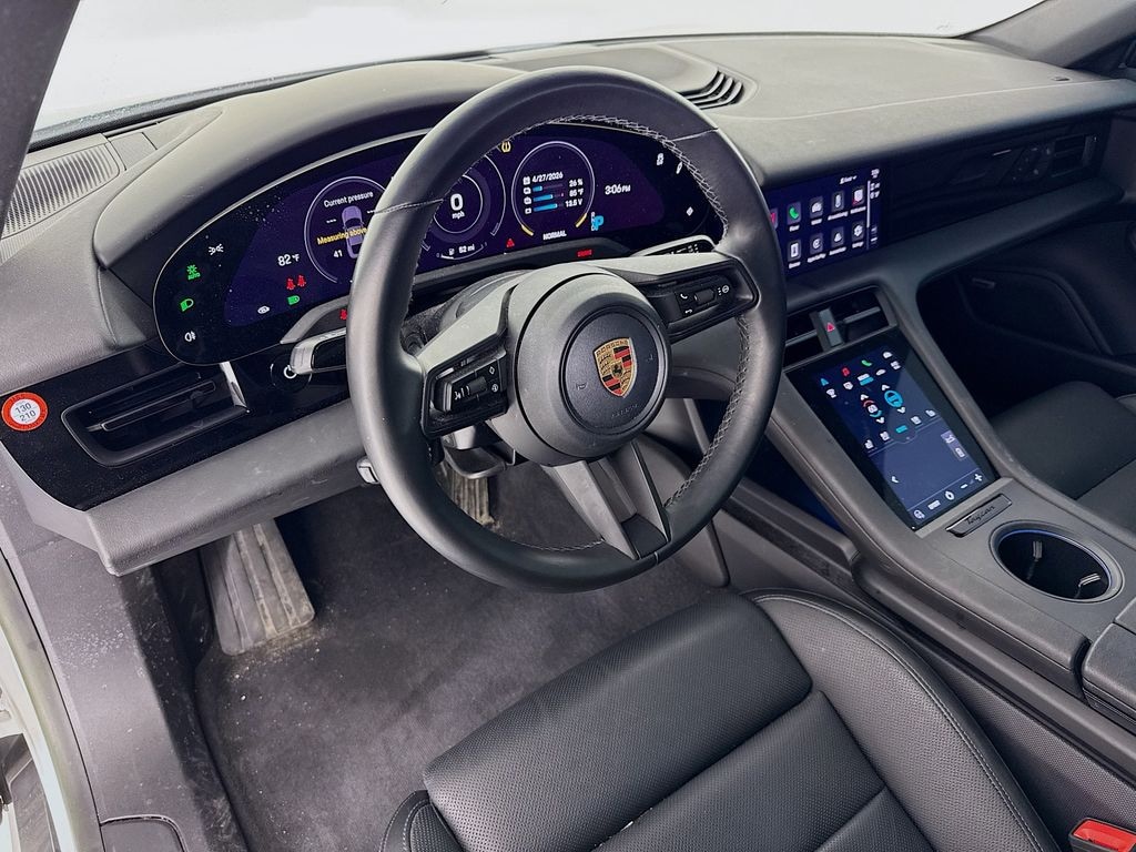 2023 Porsche Taycan in White with Black Interior. Under Porsche Approved Certified Pre-Owned Warranty for 2 Years and Unlimited Miles from Expiration of Porsche New Vehicle Warranty. New Vehicle Warranty Start Date is 1/17/2023. Premium Package: Power Folding Exterior Mirrors, Ionizer, Power Seats (14-way) with Comfort Memory, Ambient Lighting, Ventilated Seats (front), Storage Package, BOSE Surround Sound, LED-Matrix Design Headlights incl PDLS+, Fixed Panoramic Roof in Glass, Surround View, and Remote Park Assist incl Lane Change Assist. Also with: Wheel Center Caps with Colored Porsche Crest, 20" Taycan Turbo Aero Wheels, Heated Steering Wheel, Performance Battery Plus, Porsche Intelligent Range Manager, On-Board 150 kW/400V DC Charger, Mobile Charger Connect, 25ft Charging Cable, Head-Up Display, and Porsche InnoDrive incl Adaptive Cruise Control and Active Lane Keep. Available at Porsche Grapevine 1280 Texan Trail Grapevine TX 76051.