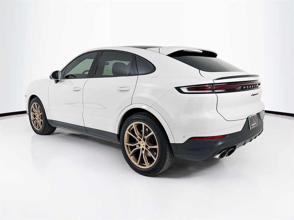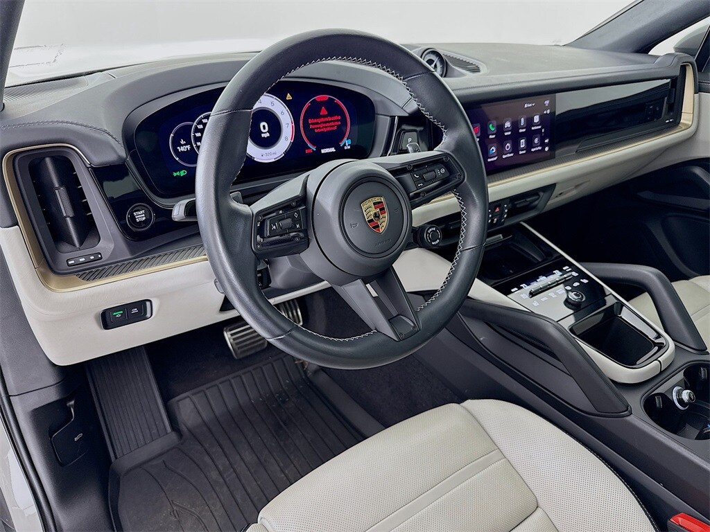2024 Porsche Cayenne Coupe S in Chalk with Leather Interior in Black/Chalk. Under Porsche Approved Warranty for 2 Years and Unlimited Miles from Expiration of Porsche New Vehicle Warranty. New Vehicle Warranty Start Date is 9/29/2023. Premium Package Plus: Power Seats (14-way) with Comfort Memory, Heated Seats (rear), Ventilated Seats (front), BOSE Surround Sound, HD-Matrix Design LED Headlights, Surround View with Active Parking Support, Ambient Lighting, 4-Zone Climate Control, and Adaptive Cruise Control. Also with: Model Designation on Rear in High Gloss Black, Adaptive Air Suspension incl PASM, Sport Tailpipes in Silver, Brake Calipers in High Gloss Black, 21" Cayenne Exclusive Design Wheels in Vesuvius Grey, Porsche Crest on Headrests (front and rear), Deviated Stitching Interior Package - Chalk, Rear Comfort Seats (2+1), Heated GT Sport Steering Wheel in Leather, Interior Trim in Matte Carbon Fiber with Accents in Neodyme, Sport Chrono Stopwatch or Compass Dial and Digital Tachometer in White, Soft Close Doors, and Air Quality System. Available at Porsche Grapevine 1280 Texan Trail Grapevine TX 76051.