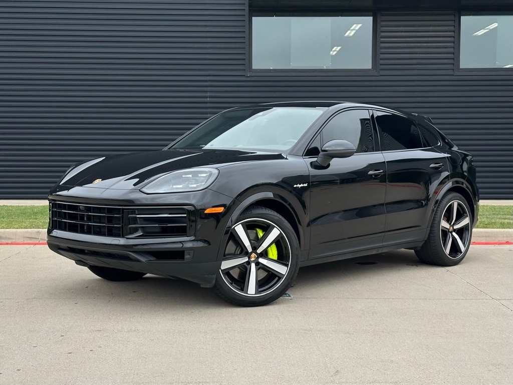 2024 Porsche Cayenne E-Hybrid Coupe in Chromite Black with Leather Interior in Black/Chalk. Under Porsche Approved Certified Pre-Owned Warranty for up to 3 Years and Unlimited Miles from Expiration of Porsche New Vehicle Warranty. New Vehicle Warranty Start Date is 5/23/2024. Options Featured: 22" Exclusive Design Sport Wheels in High Gloss Black, Power Seats (14-way) with Comfort Memory, Rear Comfort Seats (2+1), Heated Steering Wheel, Ventilated Seats (front), Interior Trim in Deep Brushed Aluminum, BOSE Surround Sound, and Surround View. Available at Porsche Grapevine 1280 Texan Trail Grapevine TX 76051.