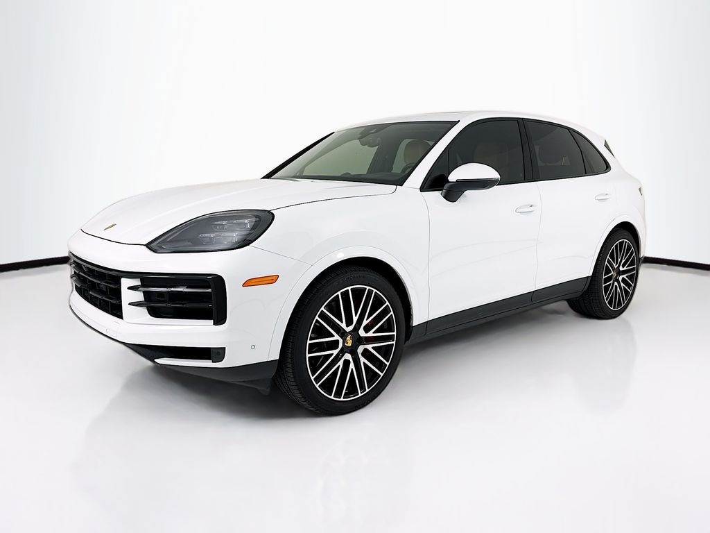 2024 Porsche Cayenne S in Carrara White Metallic with Leather Interior in Black/Mojave Beige. Under Porsche Approved Certified Pre-Owned Warranty for 2 Years and Unlimited Miles from Expiration of Porsche New Vehicle Warranty. New Vehicle Warranty Start Date is 12/28/2023. Premium Package Plus: Panoramic Roof, Power Seats (14-way) with Comfort Memory, Heated Seats (rear), Ventilated Seats (front), BOSE Surround Sound, HD-Matrix Design LED Headlights, Surround View with Active Parking Support, Ambient Lighting, 4-Zone Climate Control, and Porsche InnoDrive incl Adaptive Cruise Control and Active Lane Keep Assist. Also Features: Window Trim in High Gloss Black, Under Door Puddle Light Projectors, Adaptive Air Suspension incl PASM, Sport Chrono Package, 22" 911 Turbo Design Wheels, Porsche Crest on Headrests (front), Heated Steering Wheel, and Technology Package. Available at Porsche Grapevine 1280 Texan Trail Grapevine TX 76051.