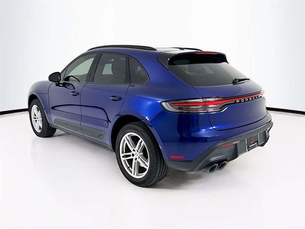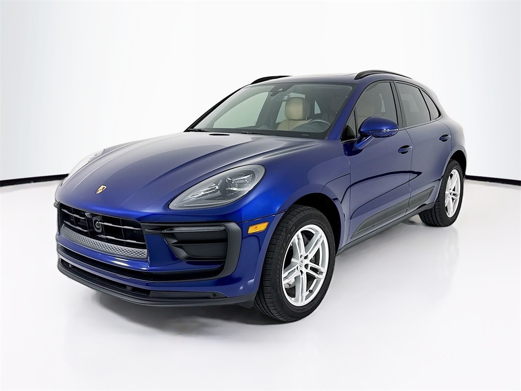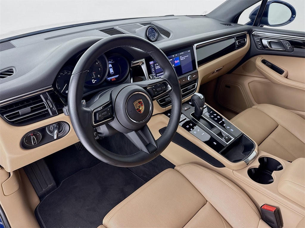 2024 Porsche Macan in Gentian Blue Metallic with Interior in Black/Mojave Beige. Under Porsche Approved Certified Pre-Owned Warranty for 2 Years and Unlimited Miles from Expiration of Porsche New Vehicle Warranty. Porsche New Vehicle Warranty Start Date is 4/30/2024. Premium Package Plus: Panoramic Roof, Power Seats (14-way) with Memory Package, Heated Seats (rear), Ventilated Seats (front), LED Headlights incl PDLS+, and Lane Change Assist. Also with: Roof Rails in High Gloss Black, Window Trim in High Gloss Black, Under Door Puddle Light Projectors, Deletion of Model Designation on Rear, Sport Tailpipes in Black, BOSE Surround Sound, Surround View, and Ionizer. Available at Porsche Grapevine 1280 Texan Trail Grapevine TX 76051.