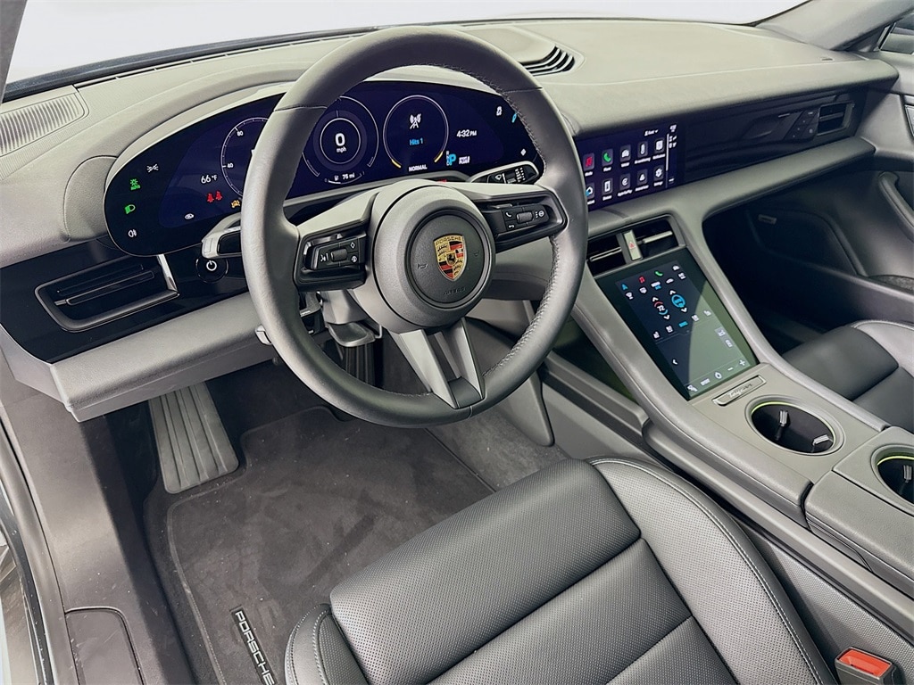 2024 Porsche Taycan in Volcano Grey Metallic with Interior in Black. Under Porsche Approved Certified Warranty for up to 3 Years and Unlimited Miles from Expiration of Porsche New Vehicle Warranty. New Vehicle Warranty Start Date is 9/16/2024. Premium Package: Fixed Panoramic Roof in Glass, Power Seats (14-way) with Comfort Memory, Ventilated Seats (front), Storage Package, BOSE Surround Sound, LED-Matrix Design Headlights incl PDLS+, Power Folding Exterior Mirrors, Lane Change Assist, Surround View, Air Quality System, and Ambient Lighting. Also with: Under Door Puddle Light Projectors, Power Charge Port Cover, Porsche Electric Sport Sound, Wheel Center Caps with Colored Porsche Crest, 20" Taycan Turbo Aero Wheels, Porsche Crest on Headrests (front and rear), Heated Steering Wheel, 19.2 kW On-Board Charger, Mobile Charger Connect. Available at Porsche Grapevine 1280 Texan Trail Grapevine TX 76051.