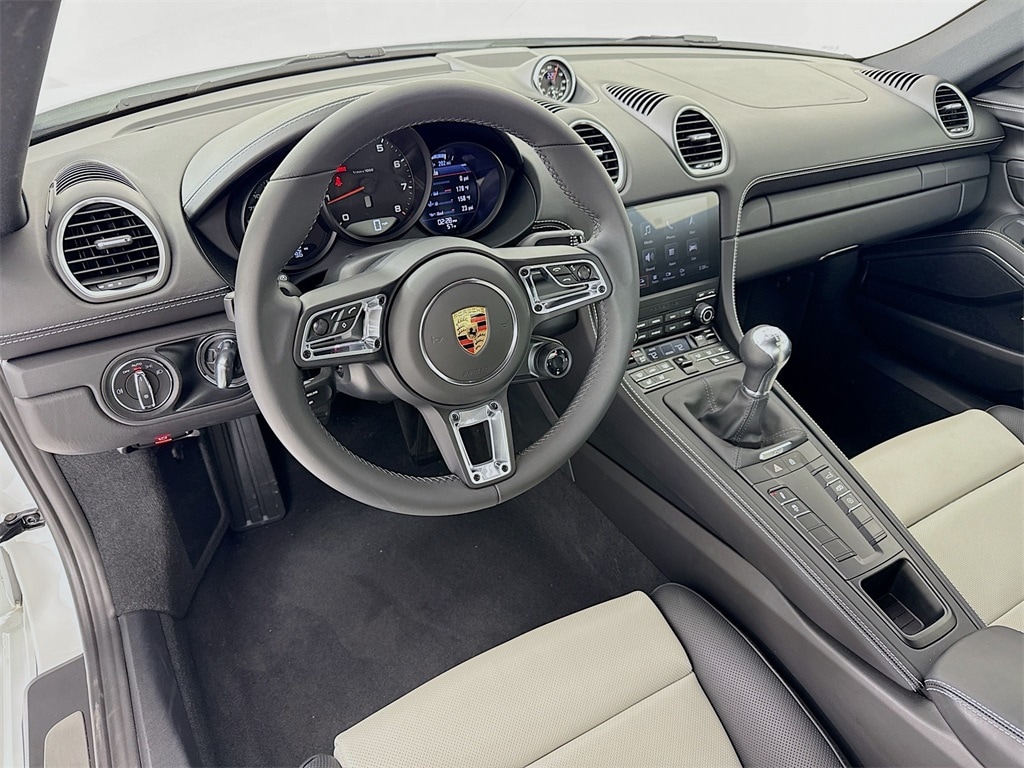 2025 Porsche 718 Cayman Style Edition in White with Black Interior. Under Porsche Approved Certified Pre-Owned Warranty for 2 Years and Unlimited Miles from Expiration of Porsche New Vehicle Warranty. New Vehicle Warranty Start Date is 1/7/2026. Premium Package: Ventilated Seats, Power Folding Exterior Mirrors incl Courtesy Lighting, Lane Change Assist, Porsche Entry and Drive, Light Design Package. Also Features: Headlight Cleaning System Covers Painted in Exterior Color, SportDesign Package in High Gloss Black, Exterior Decals in Black, 6-Speed Manual Transmission with Porsche Chrono Package, PASM, Porsche Torque Vectoring, Power Steering Plus, Deviated Leather Seat Centers, GT Sport Steering Wheel in Leather, Interior Trim in Leather, Electric Steering Column, Navigation Including Porsche Connect, Smartphone Compartment, Voice Control, BOSE Surround Sound, and Clear Taillights. Available at Porsche Grapevine 1280 Texan Trail Grapevine TX 76051