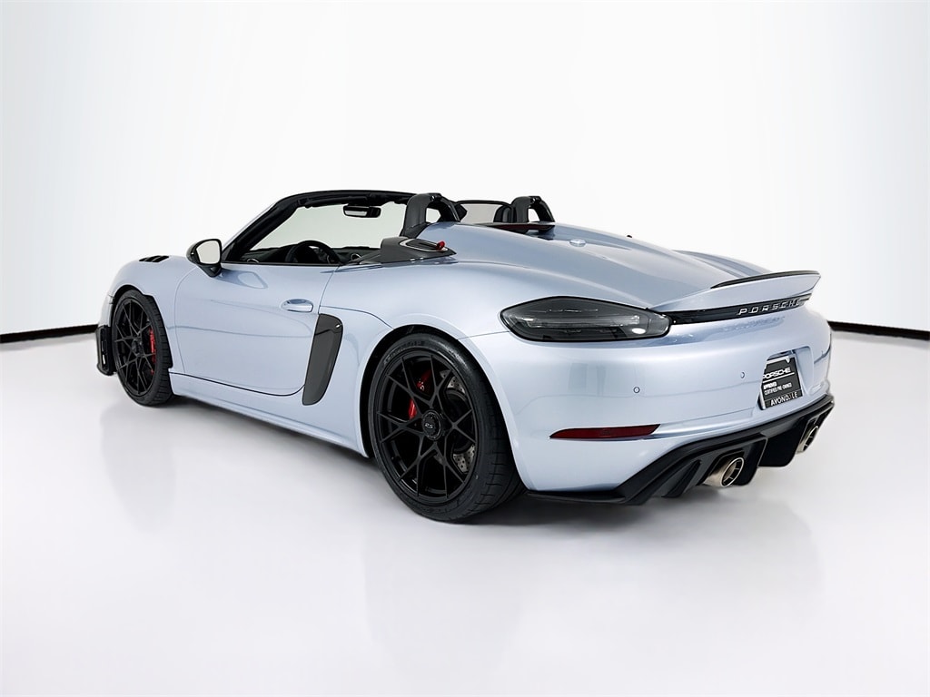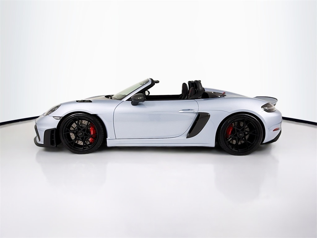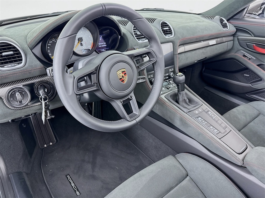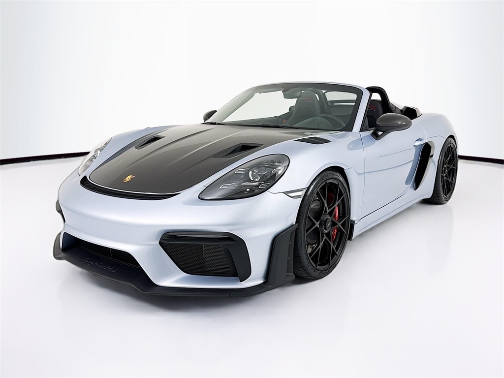 2025 Porsche 718 Spyder RS in Paint to Sample Polar Silver Metallic with Leather/Race-Tex Interior in Black with Carmine Red Stitching. Under Porsche Approved Certified Pre-Owned Warranty for up to 3 Years and Unlimited Miles from Expiration of Porsche New Vehicle Warranty. New Vehicle Warranty Start Date is 8/30/2025. Options Featured: Weissach Package, Deletion of Model Designation on Rear, Spyder RS Top with Accents in Deviated Color, Deletion of "Spyder RS" Logo on Doors, "Porsche" Logo on Rear in High Gloss Silver, Front Axle Lift System, Chrono Package, Wheels Painted in Satin Black, Adaptive Sport Seats Plus (18-way), Heated Seats, Steering Wheel and Gear Lever/Selector in Black Leather, Seat Belts in Carmine Red, Sun Visors in Carmine Red, Sun Visors in Leather, Smartphone Compartment, BOSE Surround Sound System, LED Headlights incl PDLS, Auto-Dimming Mirrors with Integrated Rain Sensor, Light Design Package, and Smoking Package. Available at Porsche Grapevine 1280 Texan Trail Grapevine TX 76051.