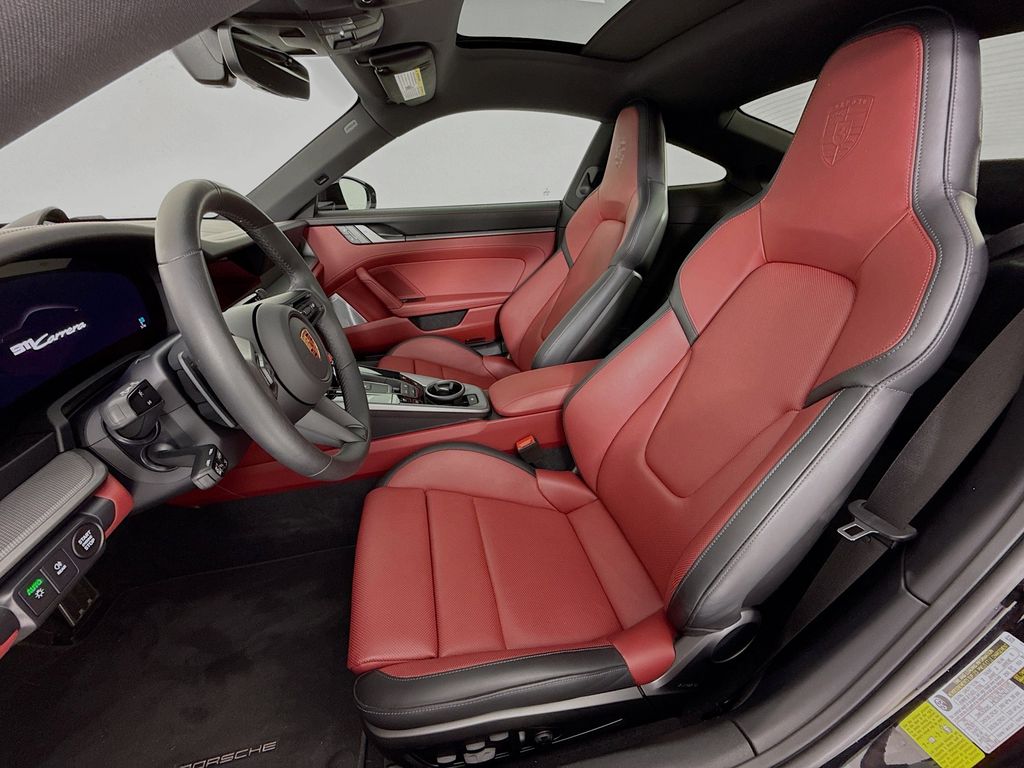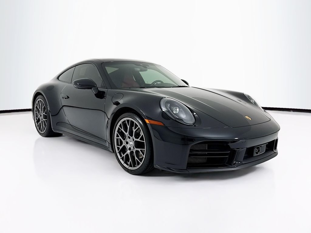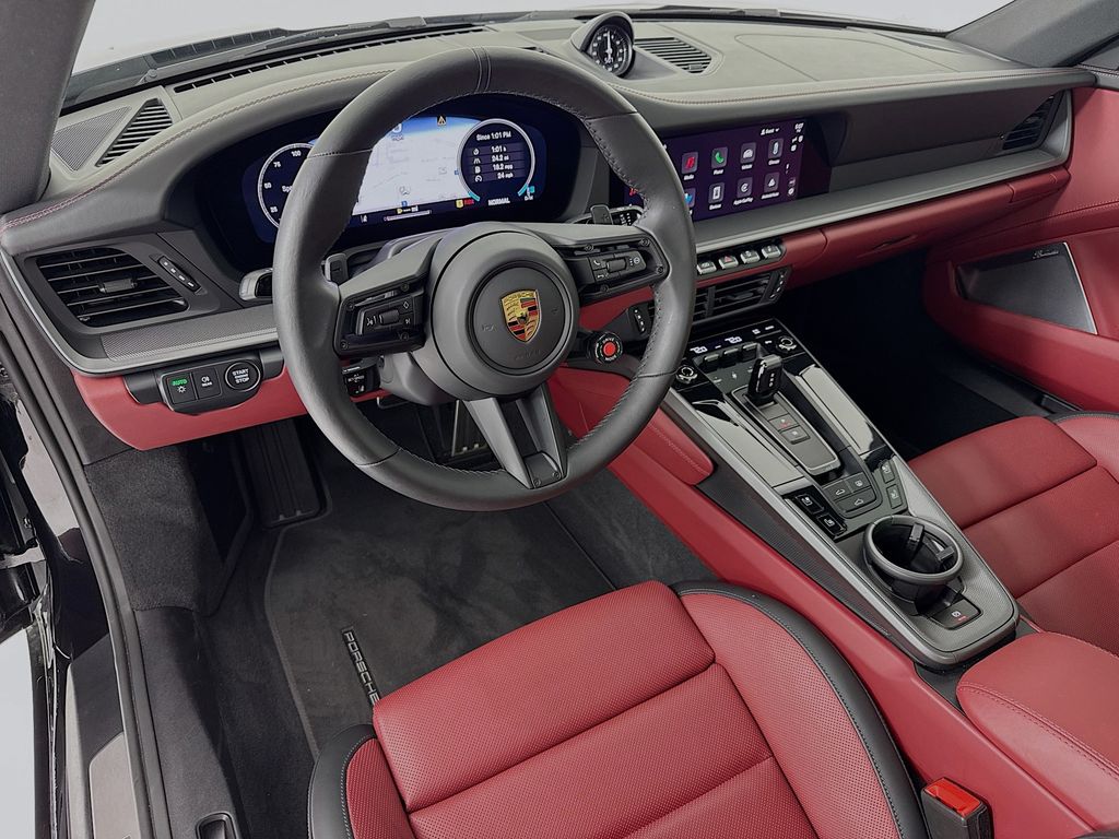 2025 Porsche 911 Carrera in Jet Black Metallic with Leather Interior in Black/Bordeaux Red. Under Porsche Approved Certified Pre-Owned Warranty for 2 Years and Unlimited Miles from Expiration of Porsche New Vehicle Warranty. New Vehicle Warranty Start Date is 11/08/2024. Premium Package: Ventilated Seats (front), Burmester High End Surround Sound, Ionizer, Surround View with Active Parking Support, Lane Change Assist, and Adaptive Cruise Control. Also with: Electric Slide/Tilt Sunroof in Glass, Deletion of Model Designation on Rear, Exterior Mirror Lower Trim in Exterior Color and Base in High Gloss Black, SportDesign Package, Power Steering Plus, Sport Chrono Package, Sport Exhaust System incl Tailpipes in Black, Extended Range Fuel Tank, 20"/21" RS Spyder Wheels, Heated GT Sport Steering Wheel in Leather, Porsche Crest on Headrests (front), Adaptive Sport Seats Plus (18-way) with Memory Package, Exclusive Design Taillights, and Under Door Puddle Light Projectors. Available at Porsche Grapevine 1280 Texan Trail Grapevine TX 76051.