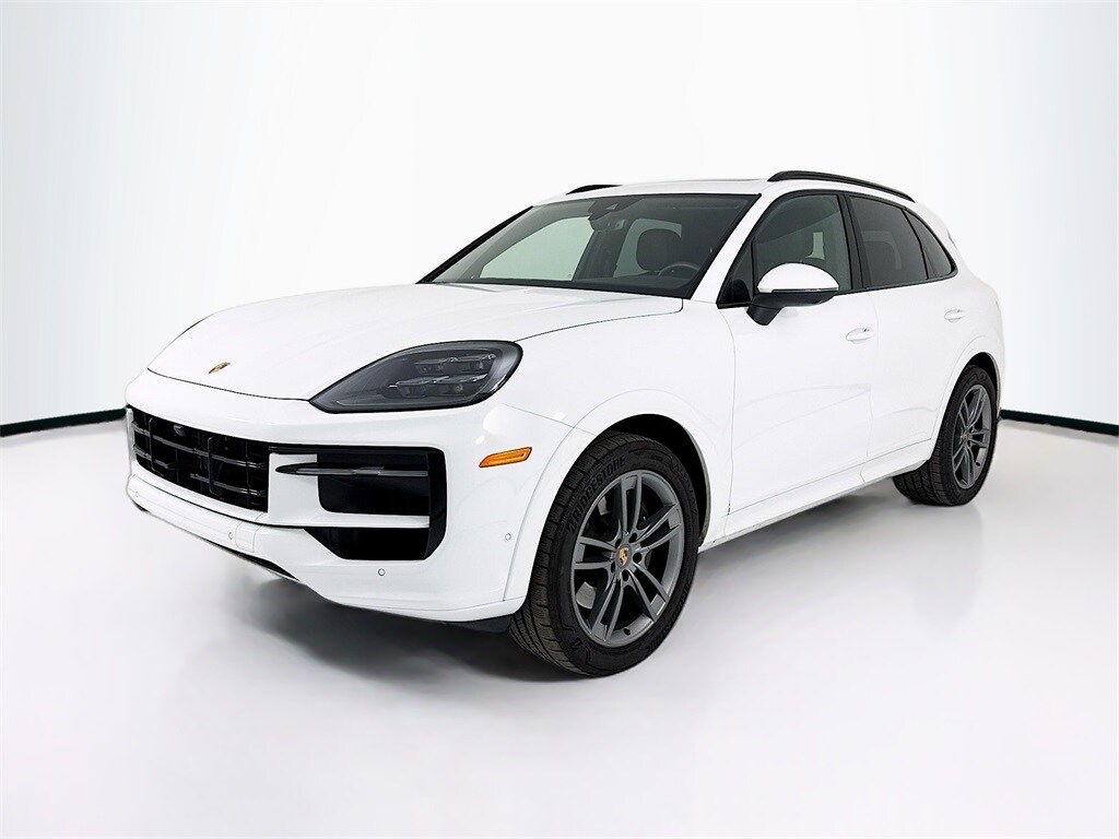 2025 Porsche Cayenne in White with Black Interior. Under Porsche Approved Certified Pre-Owned Warranty for 2 Years and Unlimited Miles from Expiration of Porsche New Vehicle Warranty. New Vehicle Warranty Start Date is 12/23/2024. Premium Package Plus: Panoramic Roof, Power Seats (14-way) with Comfort Memory, Heated Seats (rear), Ventilated Seats (front and rear), BOSE Surround Sound, HD-Matrix Design Headlights, 4-Zone Climate Control, and Adaptive Cruise Control. Also with: Roof Rails in Black Aluminum Finish, Window Trim in High Gloss Black, SportDesign Package in High Gloss Black, Exclusive Design Fuel Cap, Sport Tailpipes in Silver, 21" Cayenne Turbo Design Wheels in Vesuvius Grey, and Porsche Crest on Headrests (front and rear). Available at Porsche Grapevine 1280 Texan Trail Grapevine TX 76051.