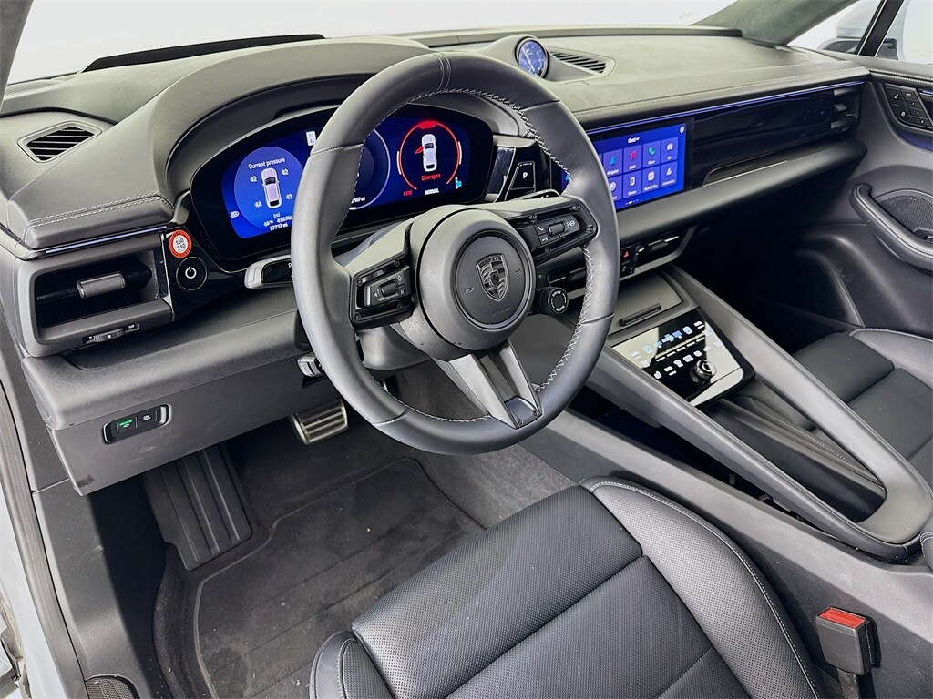 2025 Porsche Macan Electric Turbo in Ice Grey Metallic with Leather Interior in Black. Under Porsche Approved Certified Pre-Owned Warranty for 2 Years and Unlimited Miles from Expiration of Porsche New Vehicle Warranty. New Vehicle Warranty Start Date is 5/29/2025. Premium Package: Heated Seats (rear), Massage Seat Function incl Ventilated Seats (front), and Advanced 4-Zone Climate Control. Also with: Side Blades in Carbon Fiber, Window Trim in High Gloss Black, Offroad Design Package, Trailer Hitch, Model Designation on Rear and "electric" Logo on Side in High Gloss Black, Airblades in High Gloss Black, Rear Axle Steering, Sport Chrono Package with Porsche Design Subsecond Clock, Brake Calipers in High Gloss Black, Porsche Electric Sport Sound, 22" RS Spyder Design Wheels, Deviated Stitching Interior Package - Turbonite, Porsche Crest on Headrests (front and rear), Comfort Seats (14-way) with Comfort Memory, Seat Belts in Turbonite, Interior Accents in Black, Door-Sill Guards in Carbon Fiber - Illuminated, Power Charge Port Cover, LED-Matrix Design Headlights in Black, Under Door Puddle Light Projectors, Thermally and Noise Insulated Glass (front and rear), Augmented Reality Head-Up Display, Air Quality System, Power Sunblind for Rear Side Windows, and Porsche InnoDrive with Active Lane Keeping. Available at Porsche Grapevine 1280 Texan Trail Grapevine TX 76051.