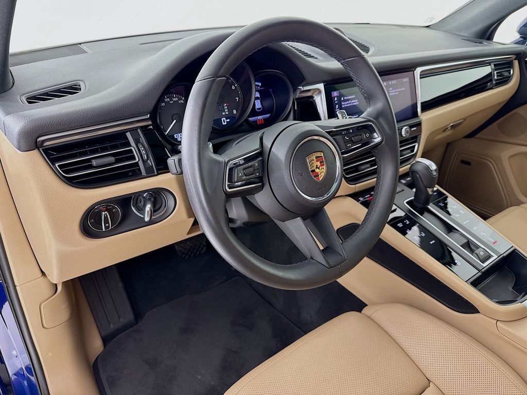 2025 Porsche Macan in Gentian Blue Metallic with Interior in Black/Mojave Beige. Under Porsche Approved Certified Pre-Owned Warranty for 2 years and Unlimited Miles from Expiration of Porsche New Vehicle Warranty. New Vehicle Warranty Start Date is 6/25/2025. Premium Package Plus: Panoramic Roof, Power Seats (14-way) with Memory Package, Heated Seats (rear), Ventilated Seats (front), LED Headlights incl PDLS+, and Lane Change Assist. Also with: 20" Macan S Wheels in Neodyme, Porsche Crest on Headrests (front and rear), BOSE Surround Sound, and Surround View. Available at Porsche Grapevine 1280 Texan Trail Grapevine TX 76051.