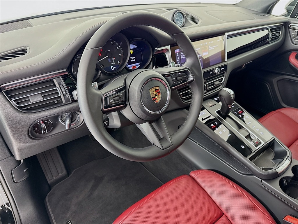 2025 Porsche Macan in Black with Leather Package in Black/Bordeaux Red. Under Porsche Approved Certified Pre-Owned Warranty for 2 Years and Unlimited Miles from Expiration of Porsche New Vehicle Warranty. New Vehicle Warranty Start Date is 11/23/2024. Premium Package Plus: Panoramic Roof System, Power Seats (14-way) with Memory Package, Heated Seats (rear), Ventilated Seats (front), LED Headlights incl PDLS+, and Lane Change Assist. Also with: Side Blades in Exterior Color, Roof Rails in High Gloss Black, Window Trim in High Gloss Black, Exclusive Design Fuel Cap, 20" Macan S Wheels in High Gloss Black, Porsche Crest on Headrests (front and rear), Heated Steering Wheel, Electric Steering Column, BOSE Surround Sound, Under Door Puddle Light Projectors, Surround View, and Sunblind for Rear Side Windows. Available at Porsche Grapevine 1280 Texan Trail Grapevine TX 76051.