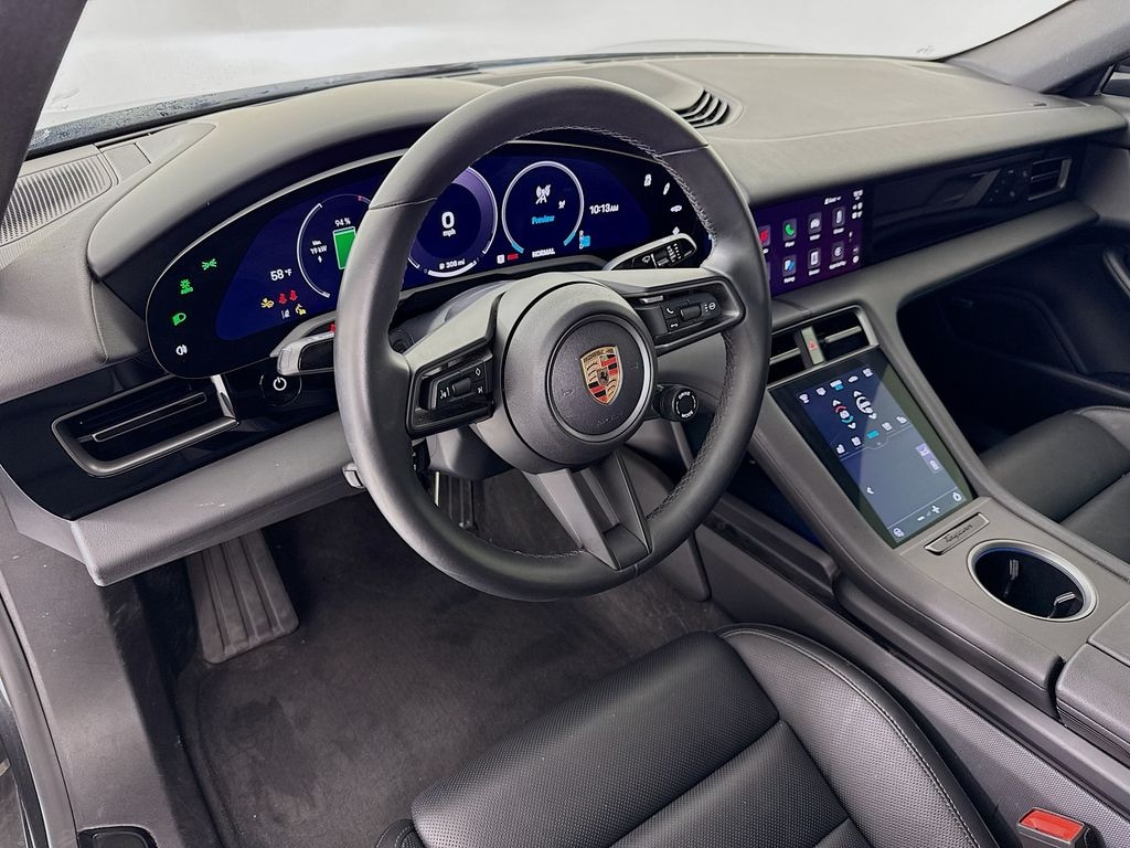 2025 Porsche Taycan in Volcano Grey Metallic with Interior in Black. Under Porsche Approved Certified Pre-Owned Warranty for 2 Years and Unlimited Miles from Expiration of Porsche New Vehicle Warranty. New Vehicle Warranty Start Date is 8/30/2024. Premium Package: Comfort Seats (14-way) with Comfort Memory, Ventilated Seats (front), Storage Package, BOSE Surround Sound, Head-Up Display, Soft Close Doors, Air Quality System, Surround View with Active Parking Support, and Adaptive Cruise Control. Also with: Exterior Mirrors in Exterior Color, Window Trim in High Gloss Black, Performance Battery Plus, 20'' Sport Aero Wheels, Door-Sill Guards in Black Brushed Aluminum - Illuminated, HD-Matrix Design LED Headlights, and Under Door Puddle Light Projectors. Available at Porsche Grapevine 1280 Texan Trail Grapevine TX 76051.