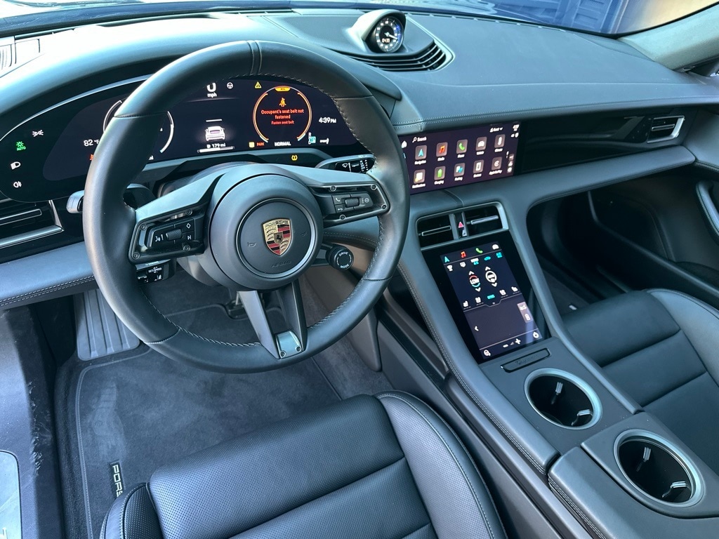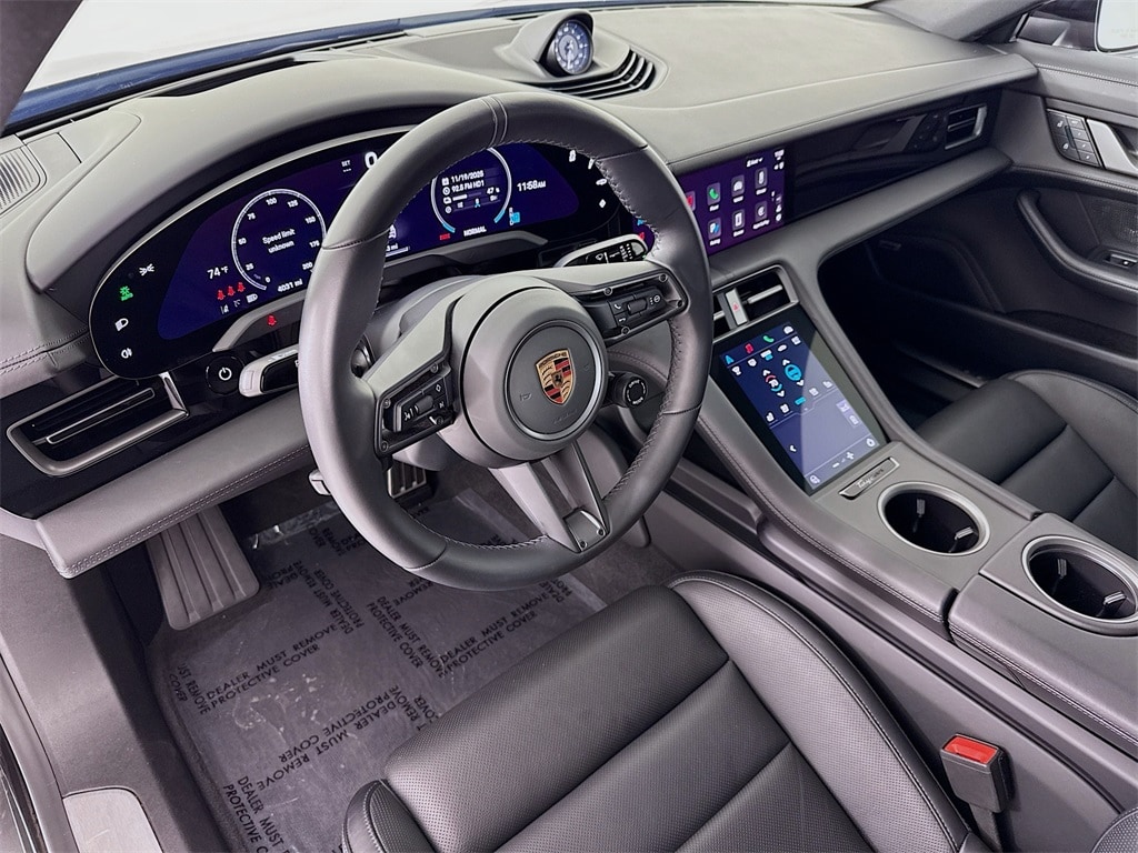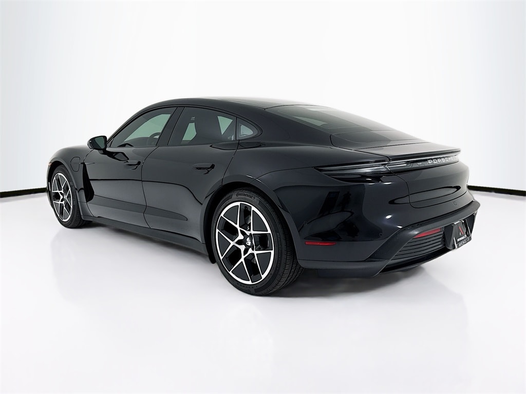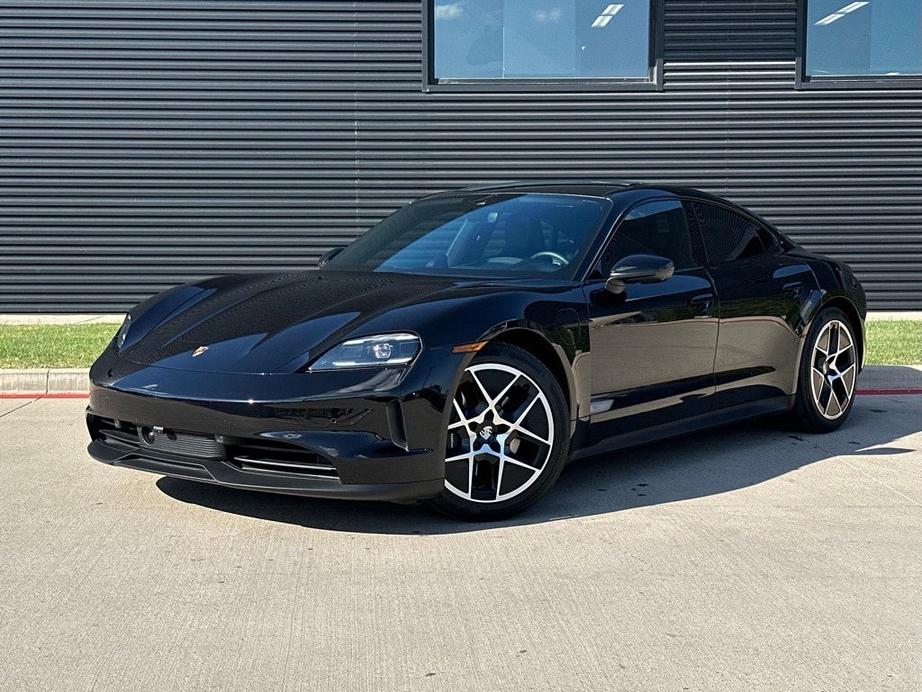 2025 Porsche Taycan in Jet Black Metallic with Leather Interior in Black. Under Porsche Approved Certified Pre-Owned Warranty for up to 3 Years and Unlimited Miles from Expiration of Porsche New Vehicle Warranty. New Vehicle Warranty Start Date is 11/2/2024. Premium Package: Comfort Seats (14-way) with Comfort Memory, Ventilated Seats (front), Storage Package, BOSE Surround Sound, Head-Up Display, Soft Close Doors, Air Quality System, Surround View with Active Parking Support, and Porsche InnoDrive incl Adaptive Cruise Control and Active Lane Keep. Also with: Window Trim in High Gloss Black, Performance Battery Plus, Sport Chrono Package, Porsche Electric Sport Sound, , 20" Sport Aero Wheels, Rear 2+1 Seats, Heated Seats (rear), Fixed Panoramic Roof in Glass. Available at Porsche Grapevine 1280 Texan Trail Grapevine TX 76051.