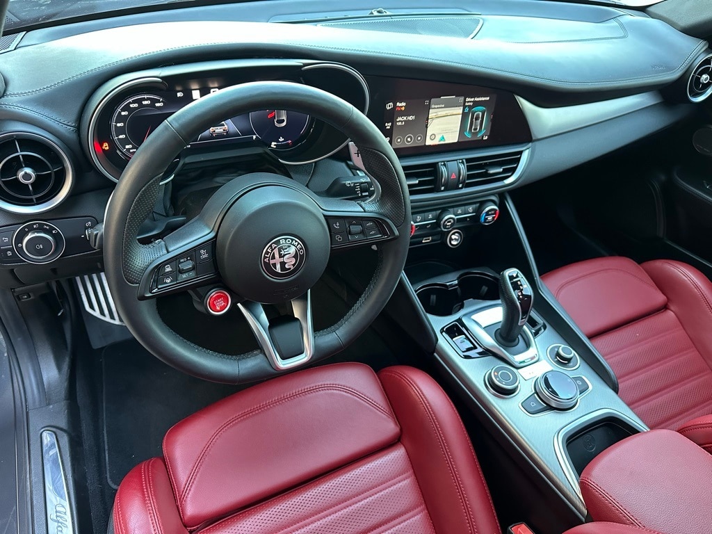 2024 Alfa Romeo Giulia Veloce in Vesuvio Gray Metallic with Red Leather Sport Seats. Options Featured: Veloce RWD Package, Premium Interior and Sound Package, Active Assist Plus Package, and more! Available at Porsche Grapevine 1280 Texan Trail Grapevine TX 76051.