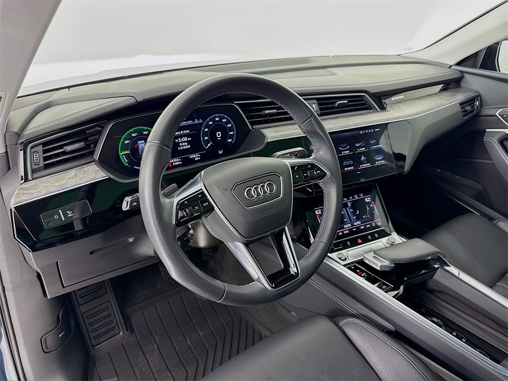2022 Audi E-Tron Sportback S Line Prestige Quattro in Plasma Blue Metallic with Black Interior. Prestige Package, Black Optic Plus Package, Digital Matrix-Design LED Headlights, and more. Available at Porsche Grapevine 1280 Texan Trail Grapevine TX 76051.