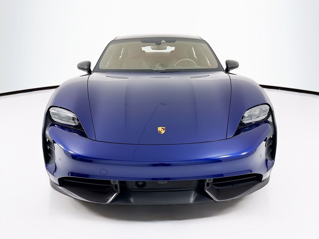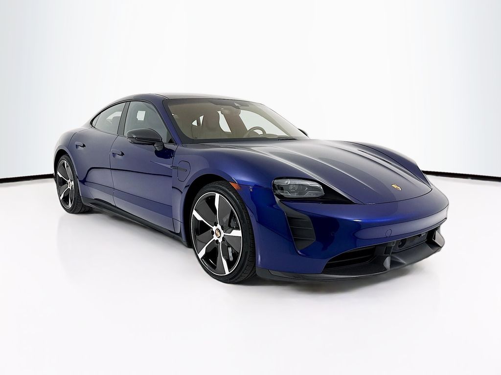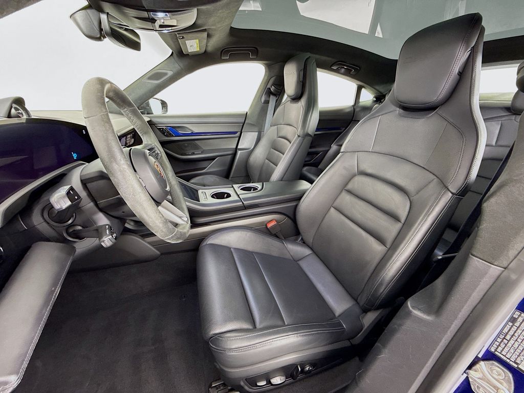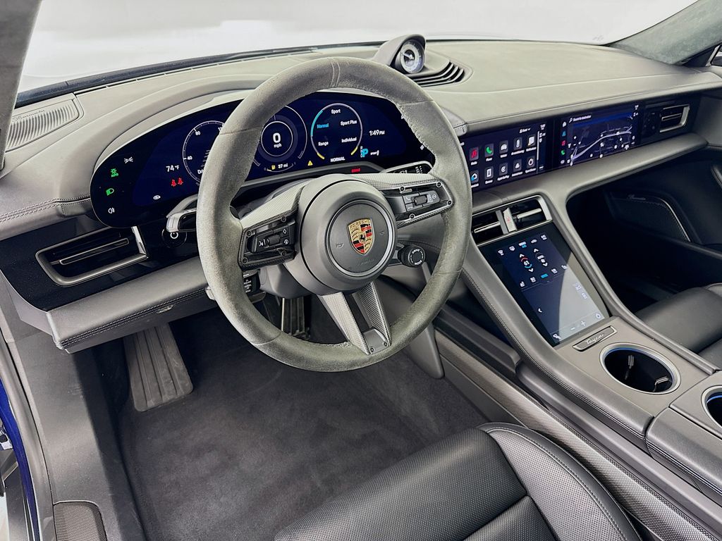 2020 Porsche Taycan Turbo S in Gentian Blue with Leather Interior in Black. Under Porsche Approved Certified Pre-Owned Warranty for 2 Years and Unlimited Miles from Date of Purchase. Premium Package: Ionizer, Massage Seat Function (front) incl Seat Ventilation (front), Storage Package, Fixed Panoramic Roof in Glass, Thermally and Noise Insulated Glass, Surround View, and Lane Change Assist. Also with: Sport Design Package in Carbon Fiber, Power Folding Exterior Mirrors, Exterior Mirror Upper Trim in Carbon Fiber, Deletion of "Taycan Turbo S" Logo on Rear, PDCC Sport, Porsche Ceramic Composite Brakes with Calipers in High Gloss Black, 21" Taycan Exclusive Design Wheels with Carbon Fiber Aeroblades, Power Seats (14-way) with Memory Package, Interior Accents in Exterior Color, Sport Chrono Stopwatch Dial in White, Advanced 4-Zone Climate Control, Steering Wheel Trim in Matte Carbon Fiber and Rim in Race-Tex, Passenger Display, Burmester 3D High-End Surround Sound, Mobile Charger Connect, and Porsche InnoDrive incl Adaptive Cruise Control. Available at Porsche Grapevine 1280 Texan Trail Grapevine TX 76051.