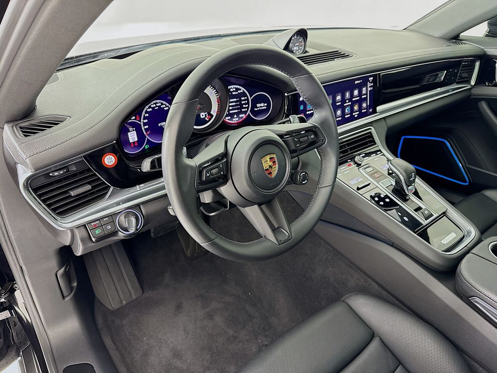 2023 Porsche Panamera Platinum Edition in Jet Black Metallic with Interior in Black. Under Porsche Approved Certified Pre-Owned Warranty for 2 Years and Unlimited Miles from Expiration of Porsche New Vehicle Warranty. New Vehicle Warranty Start Date is 9/27/2022. Assistance Package: Head-Up Display, Surround View, Porsche InnoDrive incl Adaptive Cruise Control and Active Lane Keep. Also Features: Model Designation on Door in Aurum, "Porsche" Logo on Rear in High Gloss Black, Model Designation on Rear in High Gloss Black, Sport Chrono Package, 21" Panamera SportDesign Wheels Painted in Satin Aurum, Heated GT Sport Steering Wheel, Storage Package, Retractable Luggage Compartment Cover, Interior Trim in High Gloss Black, Central Tachometer in White, and LED-matrix Design Headlights in Black incl PDLS+. Available at Porsche Grapevine 1280 Texan Trail Grapevine TX 76051.
