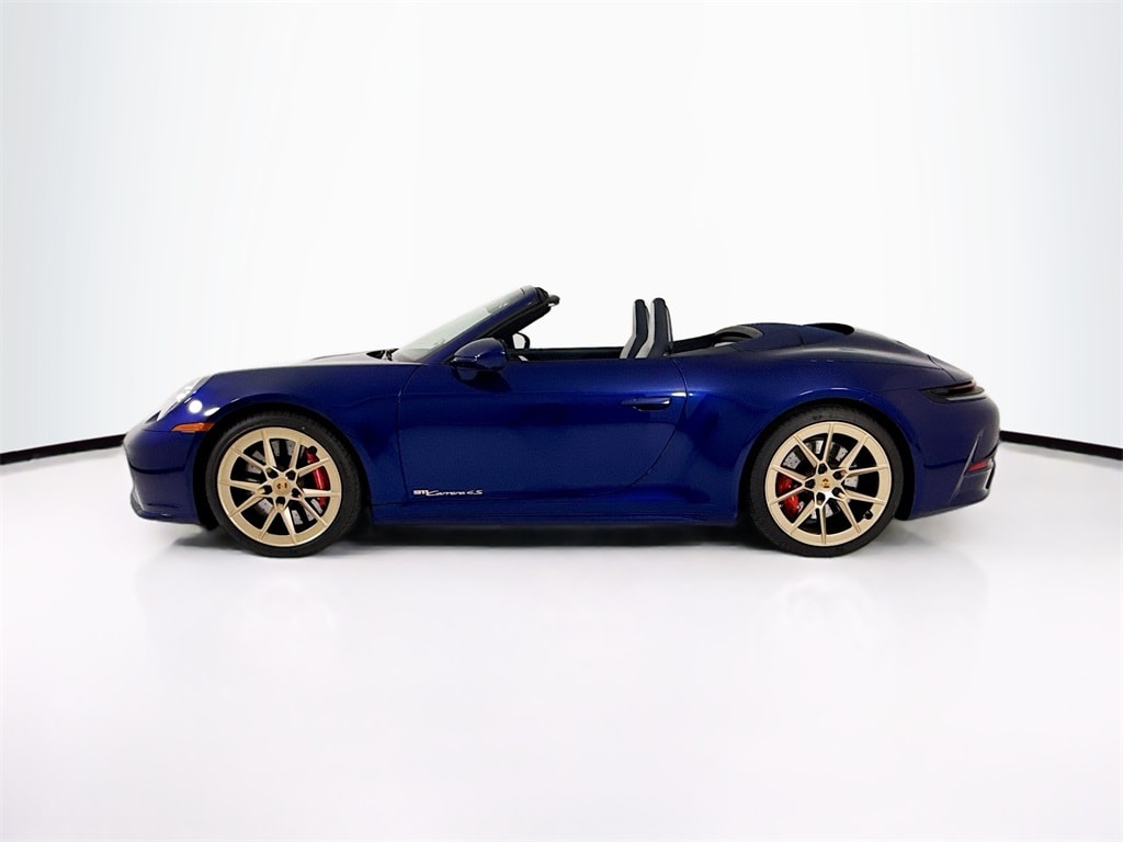2026 Porsche 911 Carrera 4S in Gentian Blue Metallic with Leather Interior in Dark Night Blue/Chalk. Premium Package with Remote Park Assist: Ventilated Seats (front), Storage Net in Passenger Footwell, BOSE Surround Sound, Remote ParkAssist, Ionizer, Lane Change Assist, and Porsche InnoDrive incl Adaptive Cruise Control and Active Lane Keep. Also with: SportDesign package, Exterior Mirror Lower Trim and Base in Exterior Color, Deletion of Model Designation on Rear, Model Designation on Doors in Neodyme, Power Steering Plus, Front Axle Lift, Sport Chrono Package, Wheels Painted in Satin Neodyme, Personalized Vehicle Keys Painted incl One Key Pouch, Heated GT Sport Steering Wheel in Leather, Adaptive Sport Seats Plus (18-way) with Memory Package, Interior Trim Inlays in Paldao with Trim in Light Silver, Porsche Crest on Headrests (front), Center Console Lid with Model Designation, Door-Sill Guards in Dark Silver Brushed Aluminum - Illuminated, HD-Matrix Design LED Headlights, and Under Door Puddle Light Projectors. Available at Porsche Grapevine 1280 Texan Trail Grapevine TX 76051.