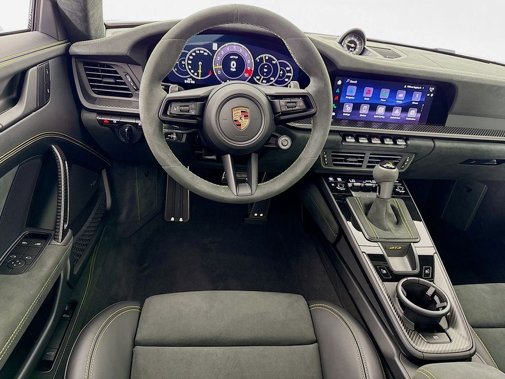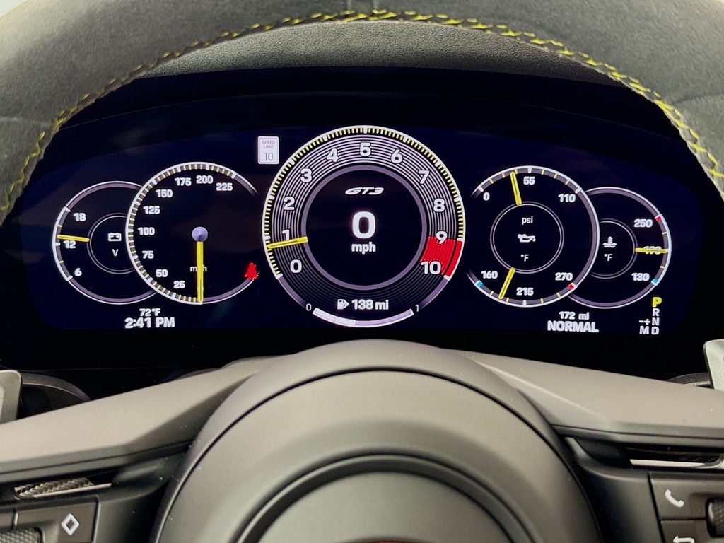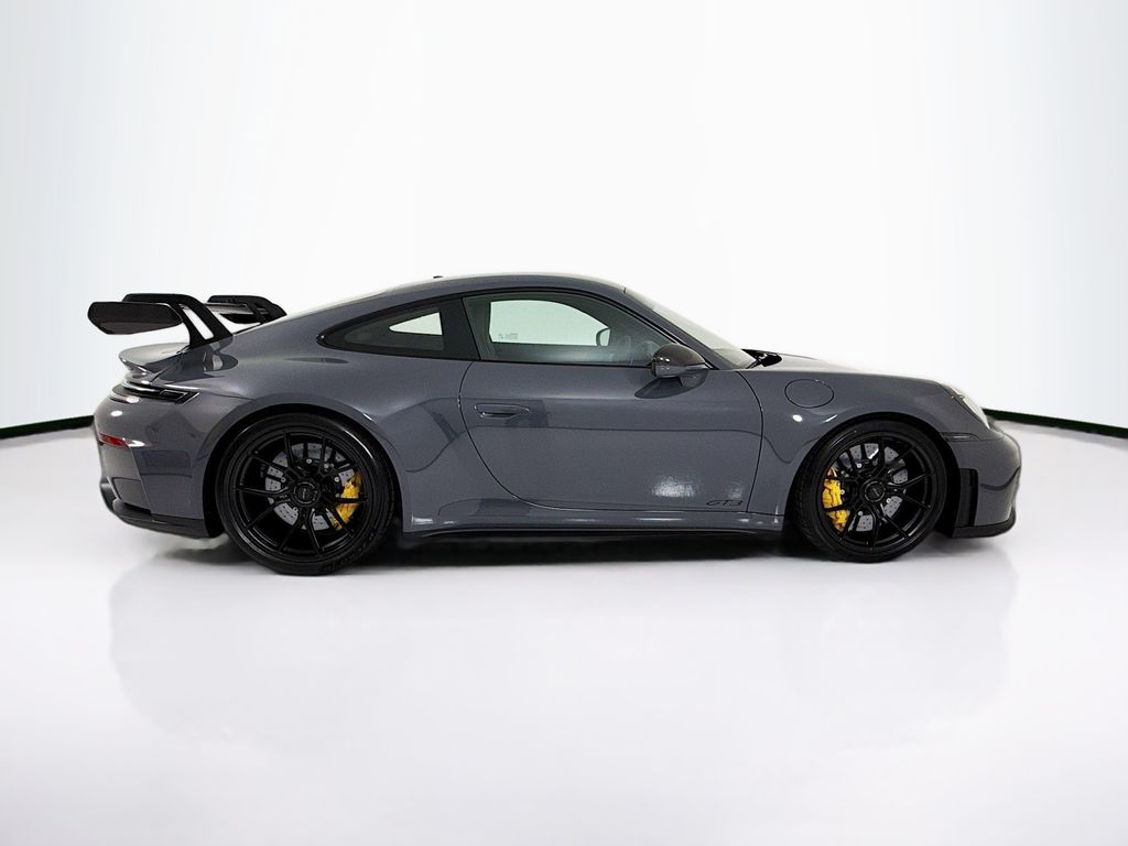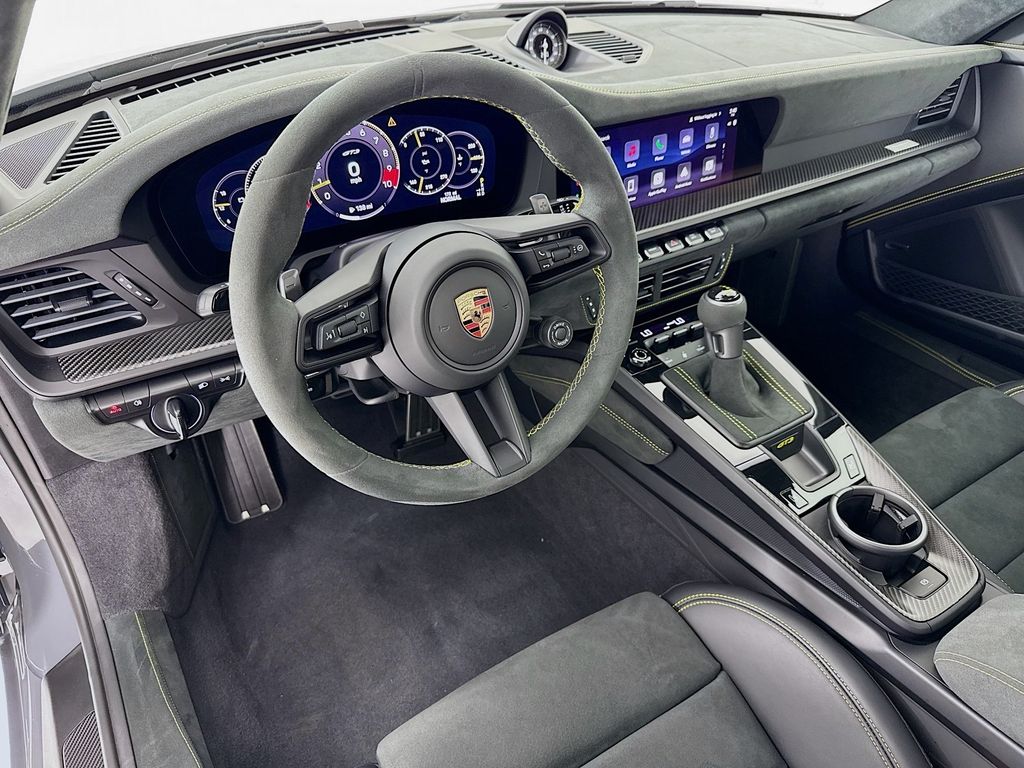 2026 Porsche 911 GT3 in Slate Grey Neo with Leather/Race-Tex Interior in Black with GT Silver Stitching. Features Full Body Paint Protection Film! Options Featured: Weissach Package, Front Lid and Roof in Exterior Color, Exclusive Design Fuel Cap, Front Axle Lift, Chrono Package, Porsche Ceramic Composite Brakes with Calipers in Yellow, Extended Range Fuel Tank, Wheels Painted in Satin Black, Deviated Stitching Interior Package, Seat Belts in Racing Yellow, Adaptive Sport Seats Plus (18-way), Air Vent Surround in Race-Tex and Air Vent Slats Painted - Racing Yellow, Extended Race-Tex Package, Sun Visors in Black Race-Tex, BOSE Surround Sound, HD Matrix Design LED headlights in Black, Exclusive Design Taillights, "BORN IN FLACHT" Under Door Puddle Light Projectors, Park Assist (rear), and Ionizer. Available at Porsche Grapevine 1280 Texan Trail Grapevine TX 76051.